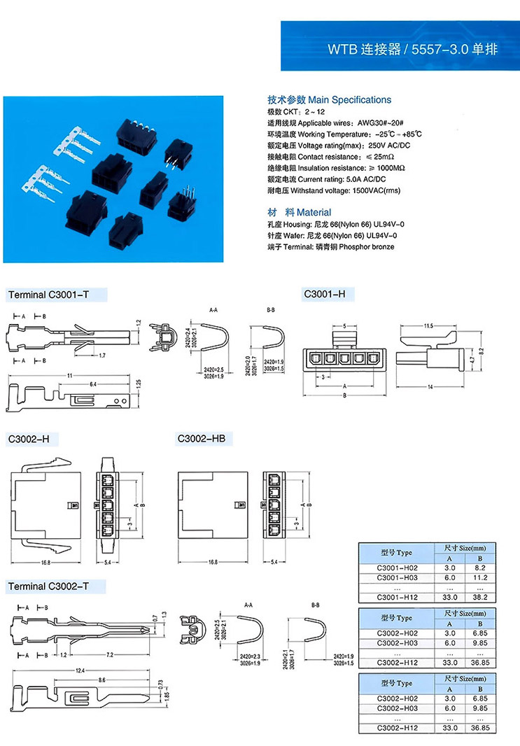 5557-3.0單排連接器